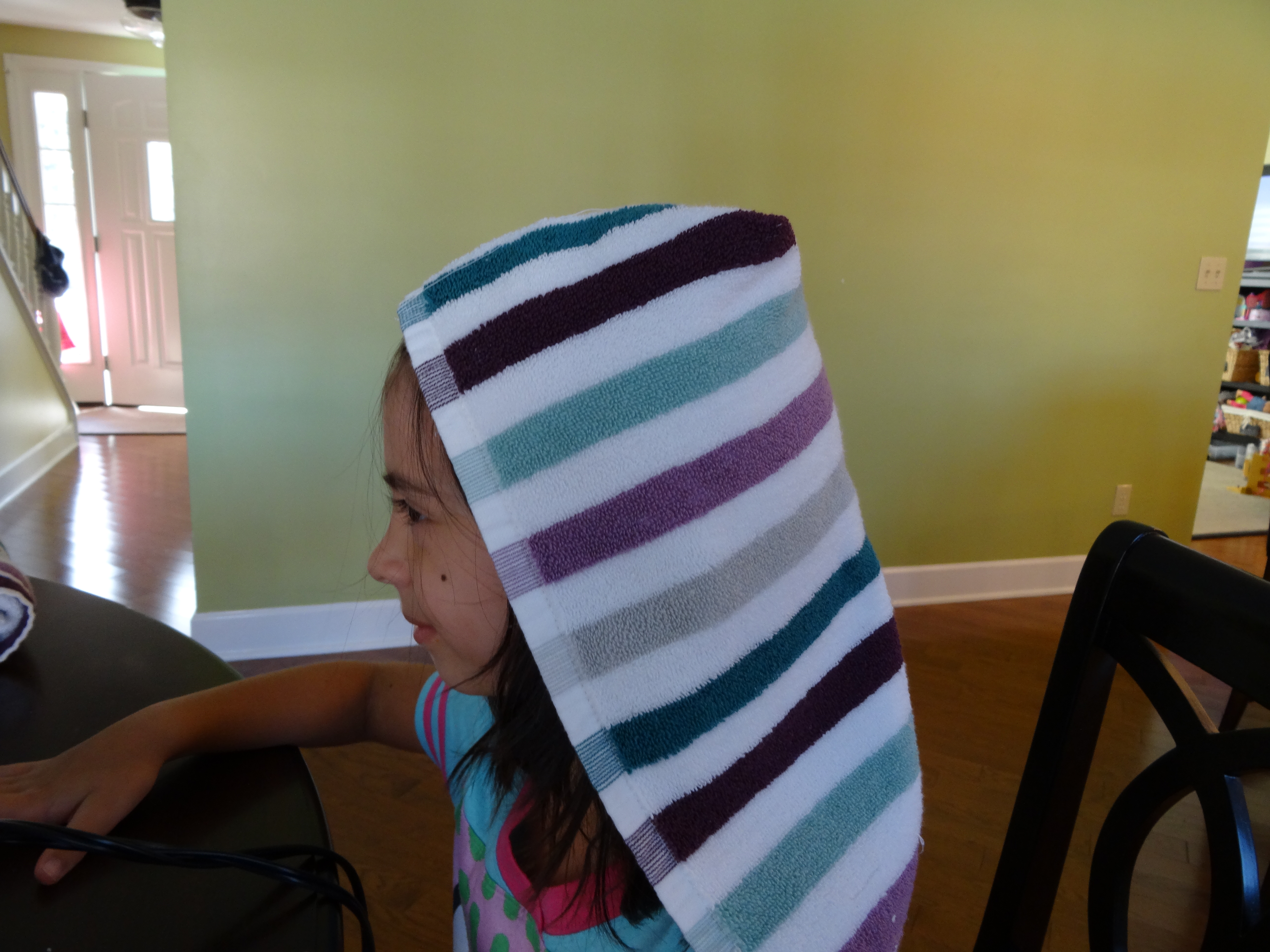 Then my magic Hubby put his perfectionist in gear. We took out all the pieces and figured out how to reassemble them so the Chandelier would be the right height. There were 2 poles that connected to give it a maximum height that was way higher than we need so we took one of the poles out and it gave us the perfect drop from the center beam of our great room. Then M put pieces of painter’s tape over the bulb sockets before painting.
