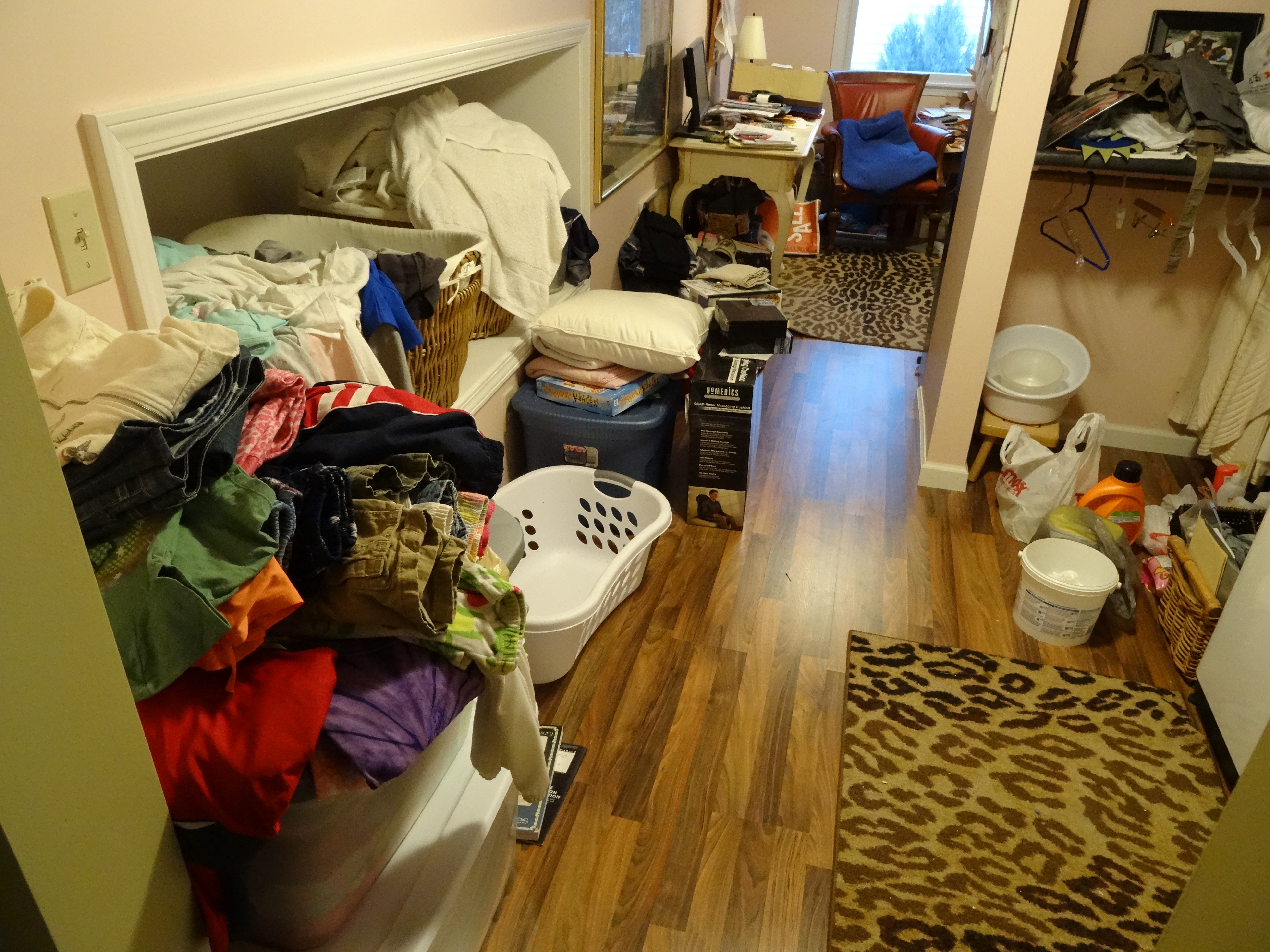 Week 5 is going to be a killer. I anticipate it will take me more than a couple of weeks to tackle this one. The Laundry Room. These are my before pictures. Don’t judge. A total disaster, right? This is a catch all room, for donations, seasonal clothes bins that need to go to the basement, but somehow never quite make it. It’s got that slanted ceiling so it makes it tough to define storage on the walls, no room for cabinets and such so I think I will have to get creative. Pinterest, here I come. Stay tuned to see how I survive this challenge.