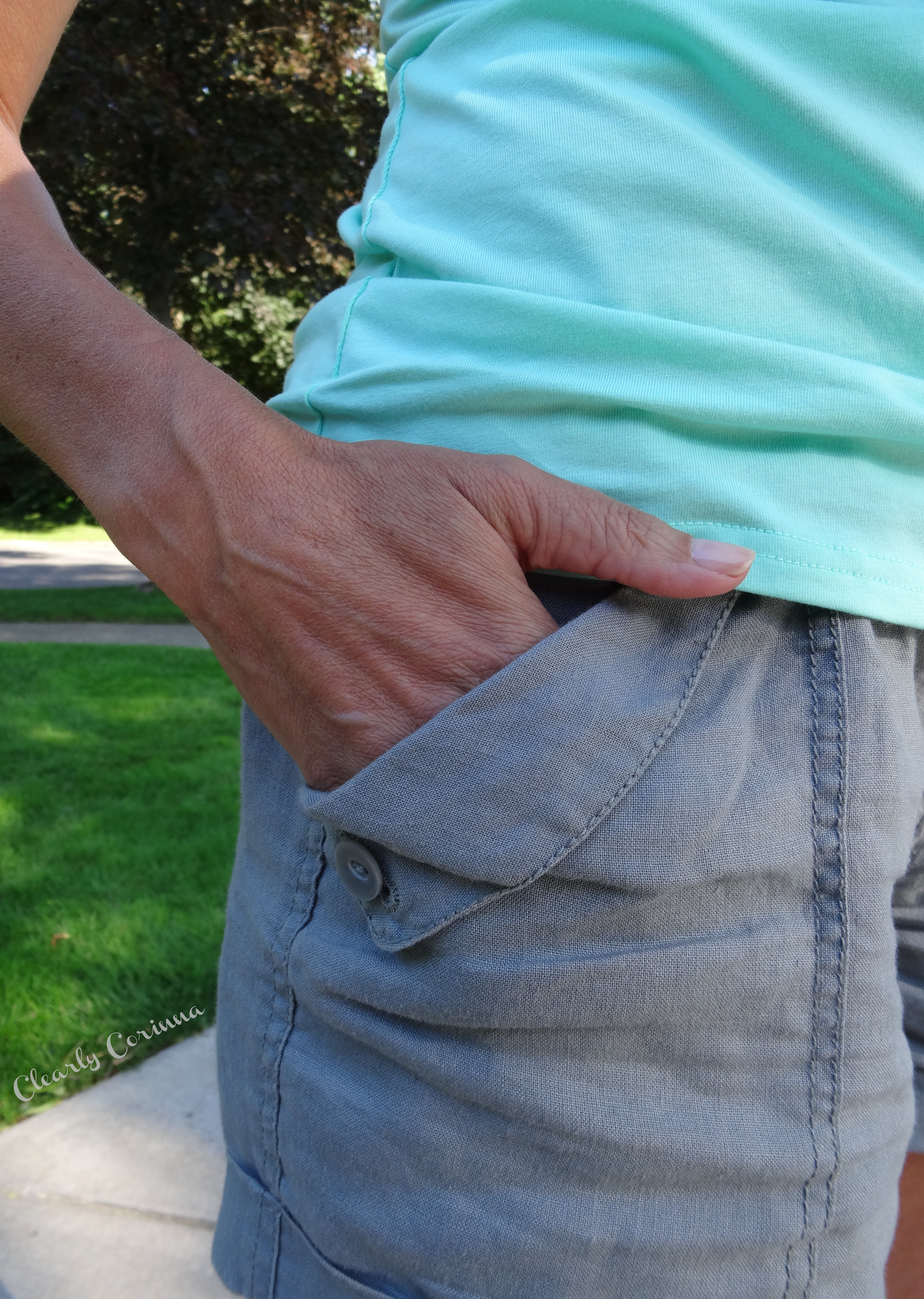 This outfit turned out better than I thought it would. An easy, but still pulled together outfit for me is a tank or tee with a flirty A-linish skirt and flip flops. It’s so much cuter than just shorts. The skirt is from Forever 21 at least 2 years ago. Go figure, it still has a regular spot in my summer wardrobe. The tank, in heather grey, is from Target this year. Denim jacket (also seen here and here) is so old. H & M about 15 years ago and I still love it. I can wear it open or buttoned up. I liked it better buttoned up for this look. The sleeves are pulled up a la J.Crew 2015. The bag is Nine West, TJ Maxx last summer. The flip flops are Lands’ End (no longer available and hard to find nice gold ones, so if you see a pair, grab them!). Watch is Target (also seen here).