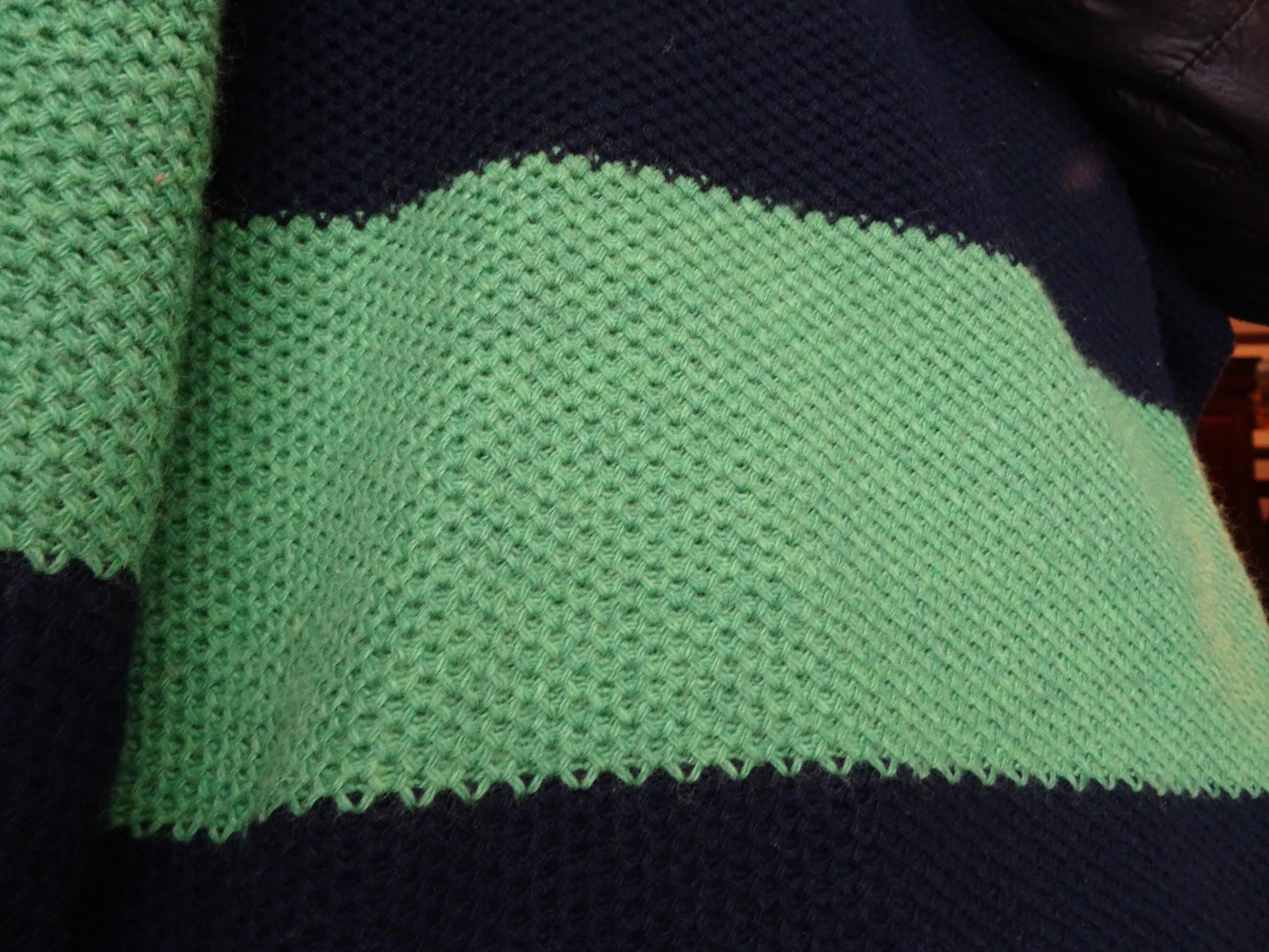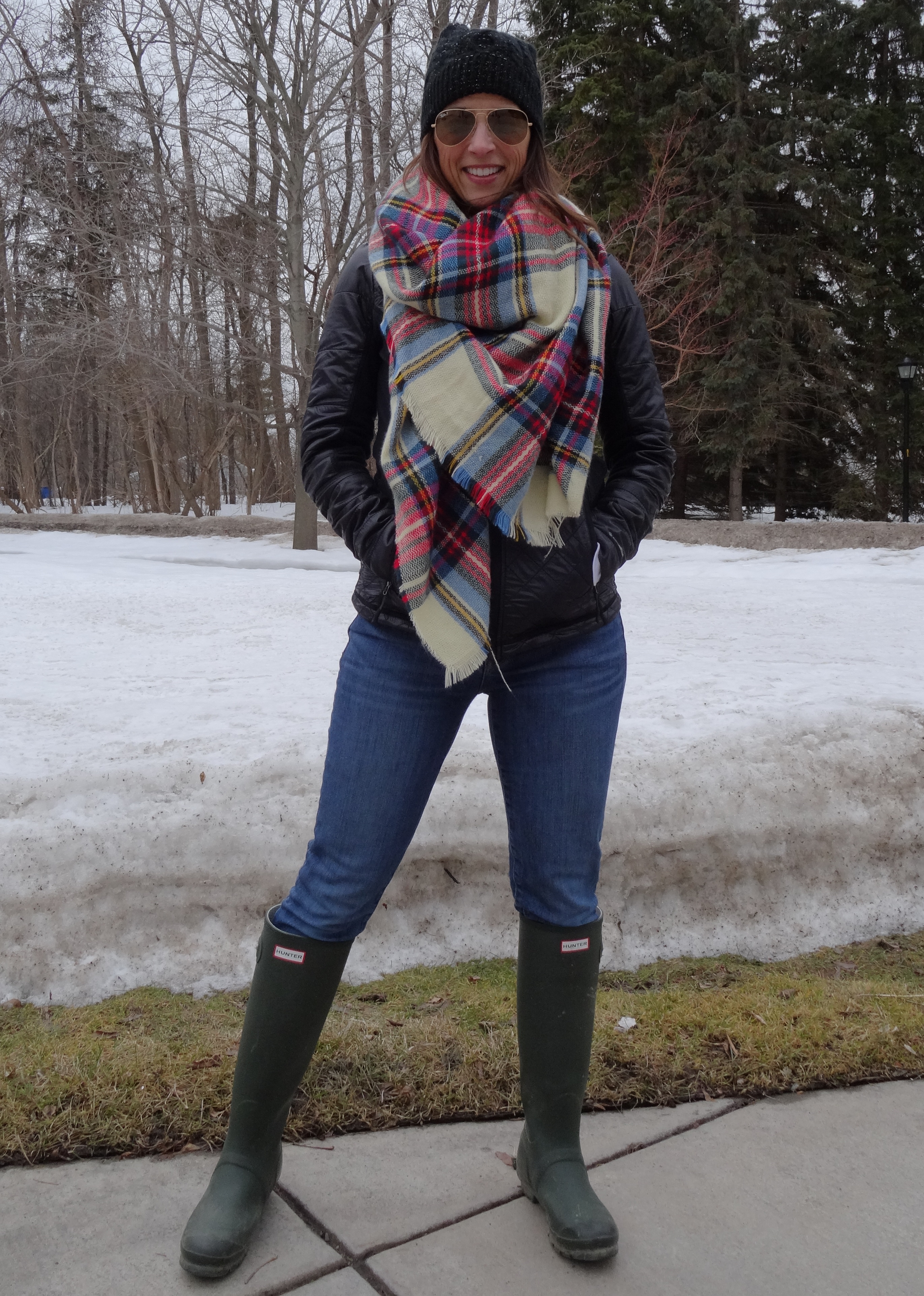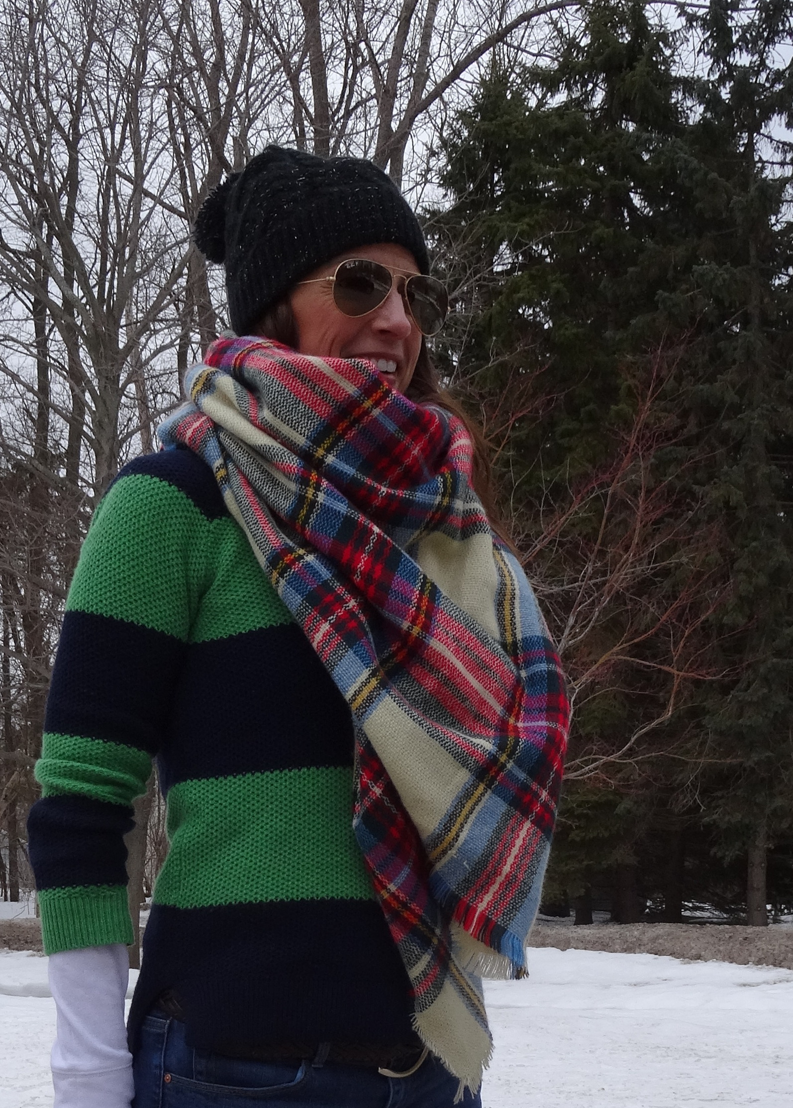 I love this look because really, it doesn’t have to be just a St. Patty’s look. Black top, black tights and a colored skirt looks so simply sharp to me. Let’s start with the skirt, It’s a summer knit skirt and I usually wear it with a ribbed tank top and flip flops so it’s nice to see it finding a place in my winter wardrobe. It is old — 3 years, maybe. Marshall’s, of course. The black turtleneck from Target (this past fall) is amazingly soft and I like that the sleeves aren’t quite short, makes it less casual. My denim jacket (also seen here) is ancient– 15 years old, at least. It’s H&M and I remember when I bought it — Syracuse working my first publishing job. I have tried to replace it and made a valiant effort last year but to no avail. None of the ones I found were right. Mostly too long. I like this one because it’s short, but not cropped. I think a lighter washed one is in my future. Stay tuned. Black tights, my Chinese Laundry over the knee suede boots (seen here and here and everywhere!) balance the look. My ASOS blanket scarf (seen here, here and here)is the finishing touch because of the holiday and it is a bit chilly, so an extra layer never hurts.